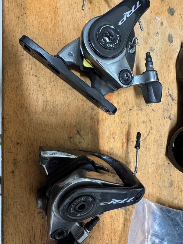Vendo in coppia pinze freno meccaniche FLAT MOUNT marca TRP modello SPYRE SLC alluminio lucidato/carbonio lucido;