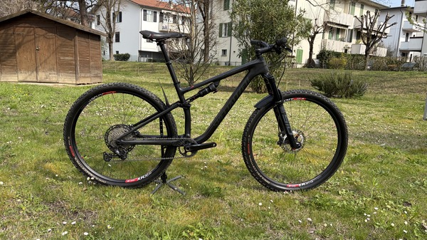 La bici è tenuta benissimo vedi foto, sono stati cambiati i componenti ruote e dischi e guarnitura e cambio e reggisella telescopico e ha 800 km, segue descrizione: