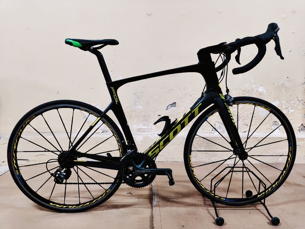 Bici bicicletta da corsa strada in carbonio SCOTT FOIL 10 - tg. XL/58 - idonea per ciclisti alti 1,80/1,90 - tubo orizzontale C/C: 58 cm. - tubo verticale C/F: 52 cm. - km.: 10000 circa - anno: 2018 - peso: kg. 7